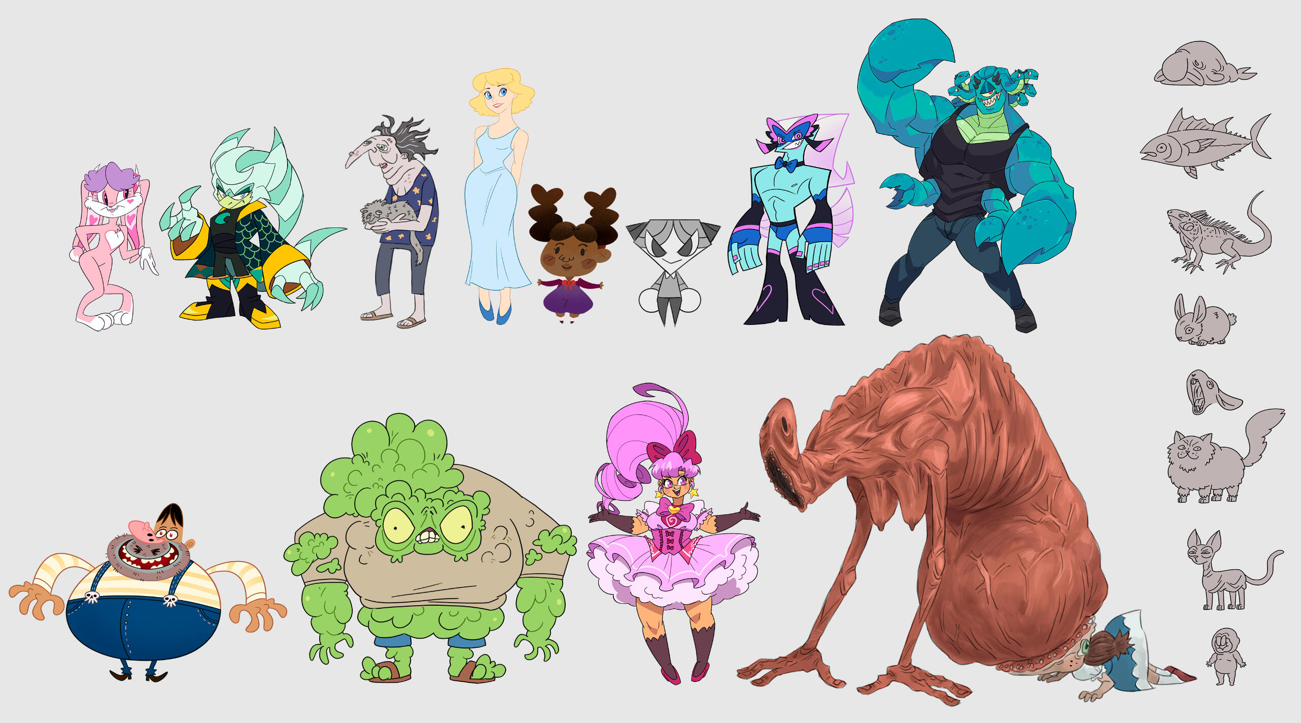 Furry, monsters,humans, sonic style, ponies, robots,armors,real people in cartoon style, character design.
